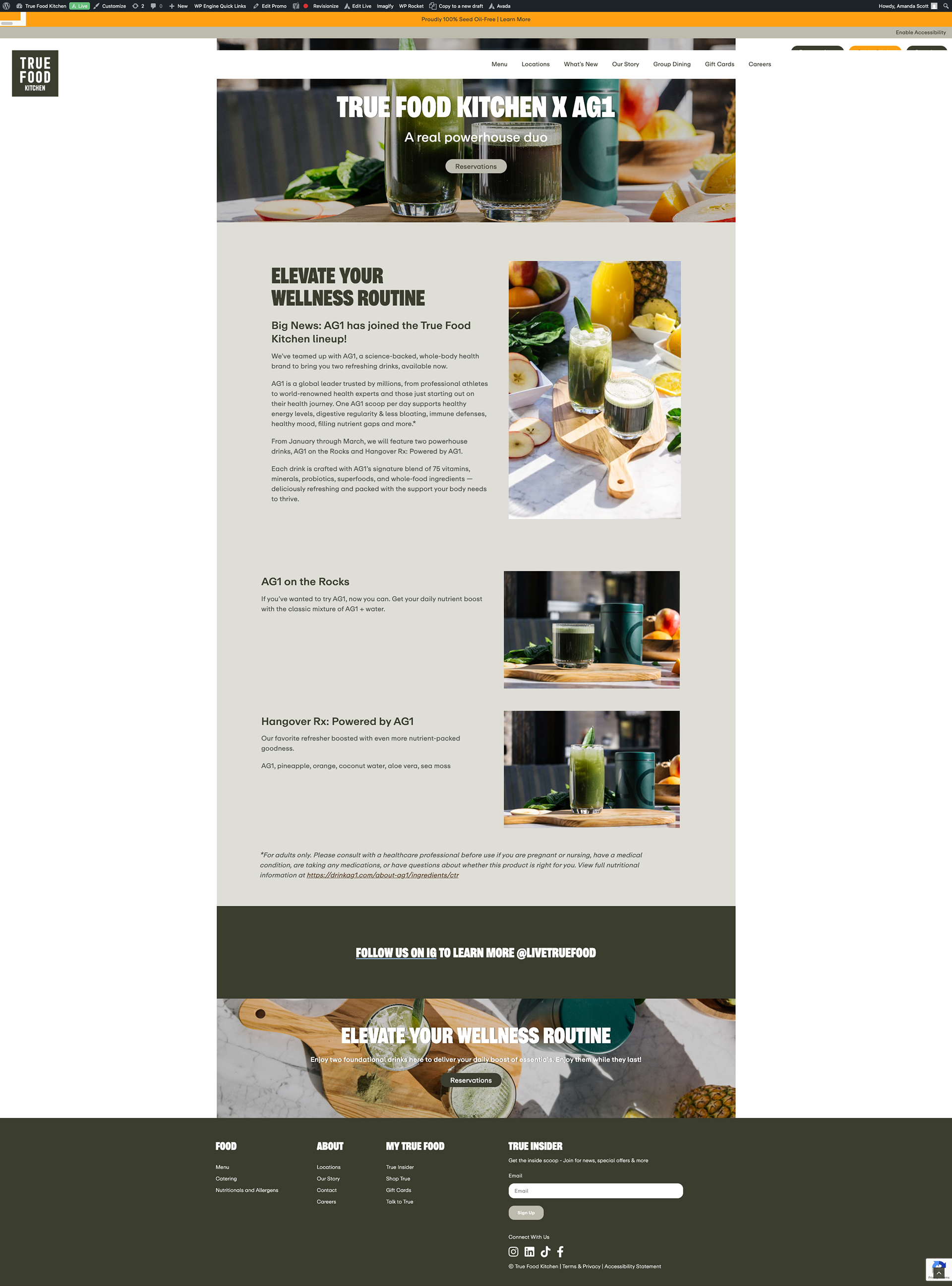 As Graphic Design Manager at True Food Kitchen, I spearheaded high-impact, multi-channel campaigns—including standout collaborations with AG1 and SZA—that drove over 10 million impressions. I crafted cohesive brand identities for both True Food Kitchen and the newly launched True Food Market, directed 10+ photo shoots, and produced compelling creative across digital, print, and social platforms. By optimizing team workflows and aligning design with strategic objectives, I accelerated project delivery by 20% and elevated brand consistency across all consumer touchpoints.